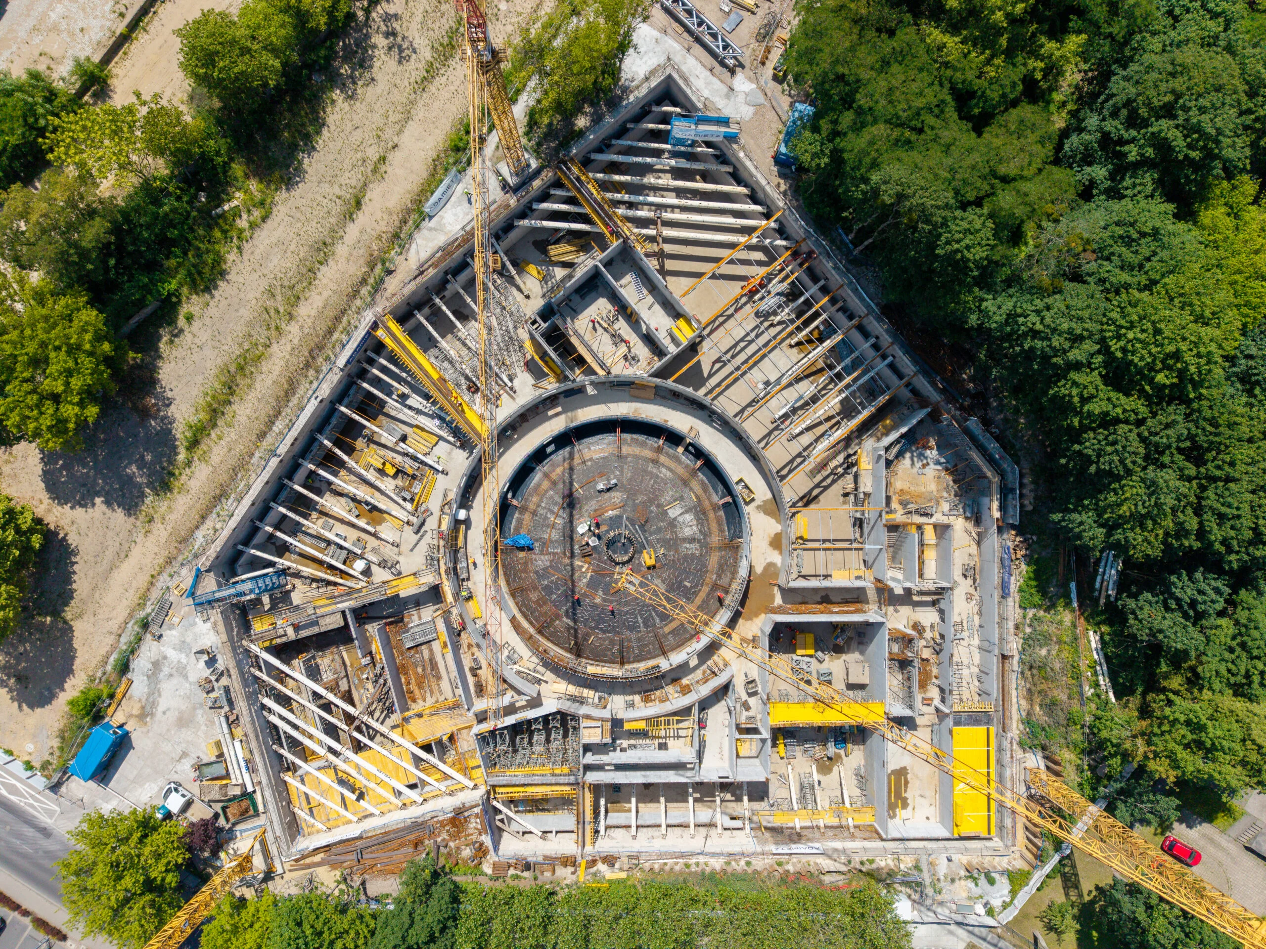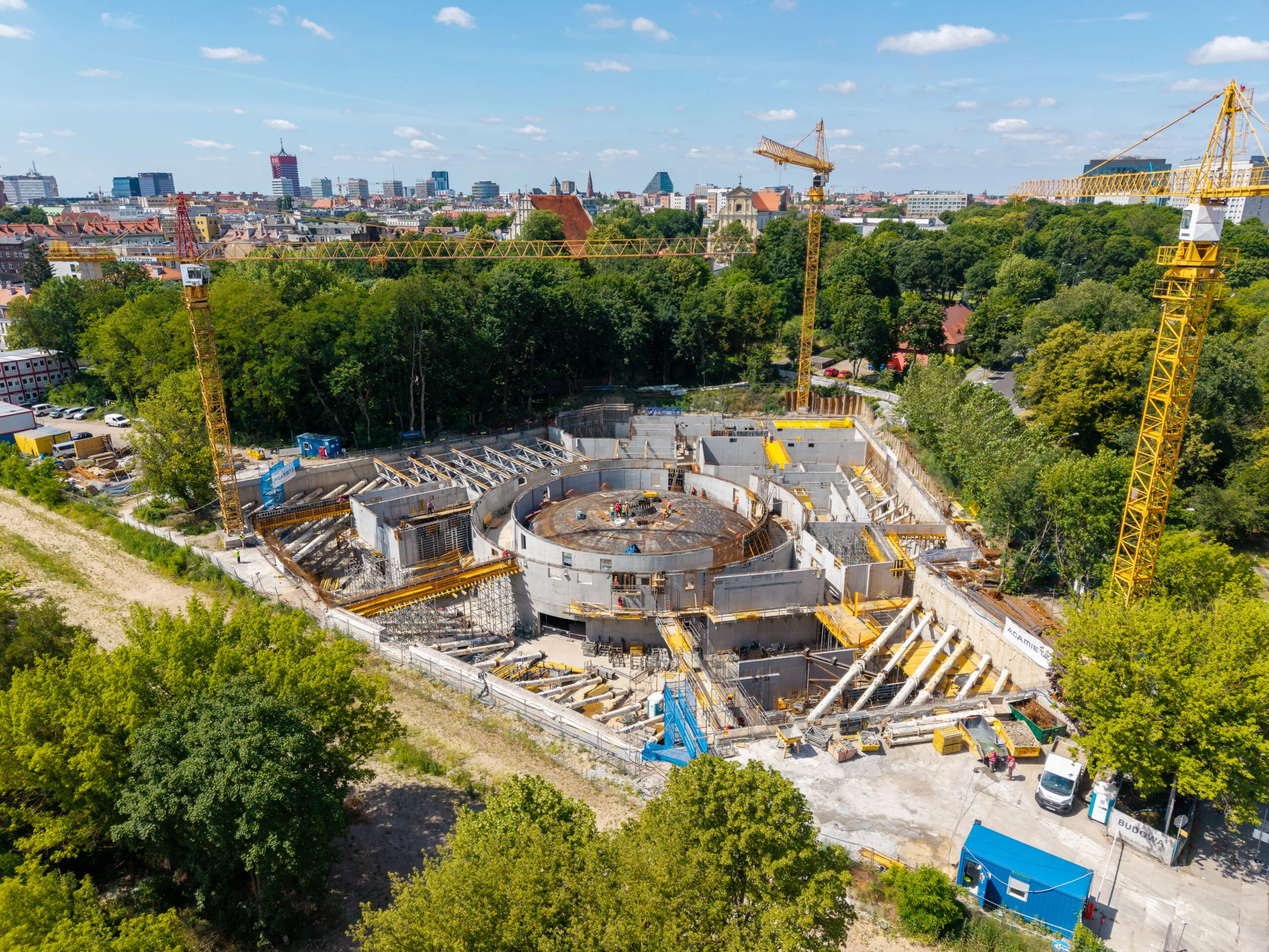 Na budowie nowego Muzeum Powstania Wielkopolskiego 1918–1919 coraz wyraźniej widać postępy prac: ściany szczelinowe, których kształt symbolicznie nawiązuje do granic Polski, moment zbrojenia kopuły nad wystawą stałą oraz podziemną część muzeum, która już wkrótce zniknie z pola widzenia – zostanie przykryta stropem poziomu „0”.