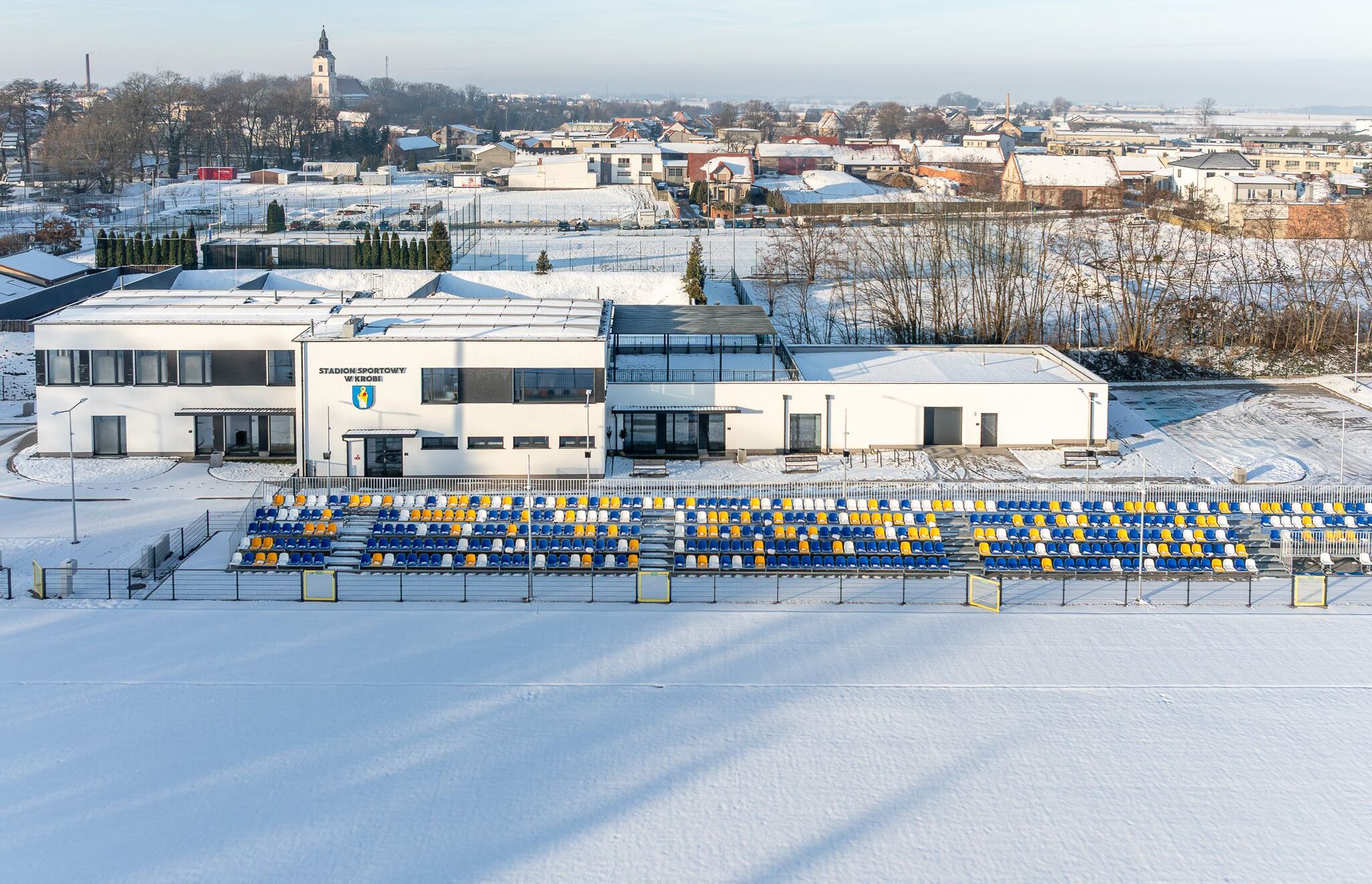 Budowa Stadionu Sportowego w Krobi przy ul. Sportowej. Realizacja stadionu obejmowała wzniesienie: budynku zaplecza szatniowo-sanitarnego, boiska piłkarskiego, bieżni, budynku kasy biletowej, budynku komentatora, trybun, ogrodzeń, ciągów komunikacyjnych, a także elementów małej architektury z infrastrukturą towarzyszącą.